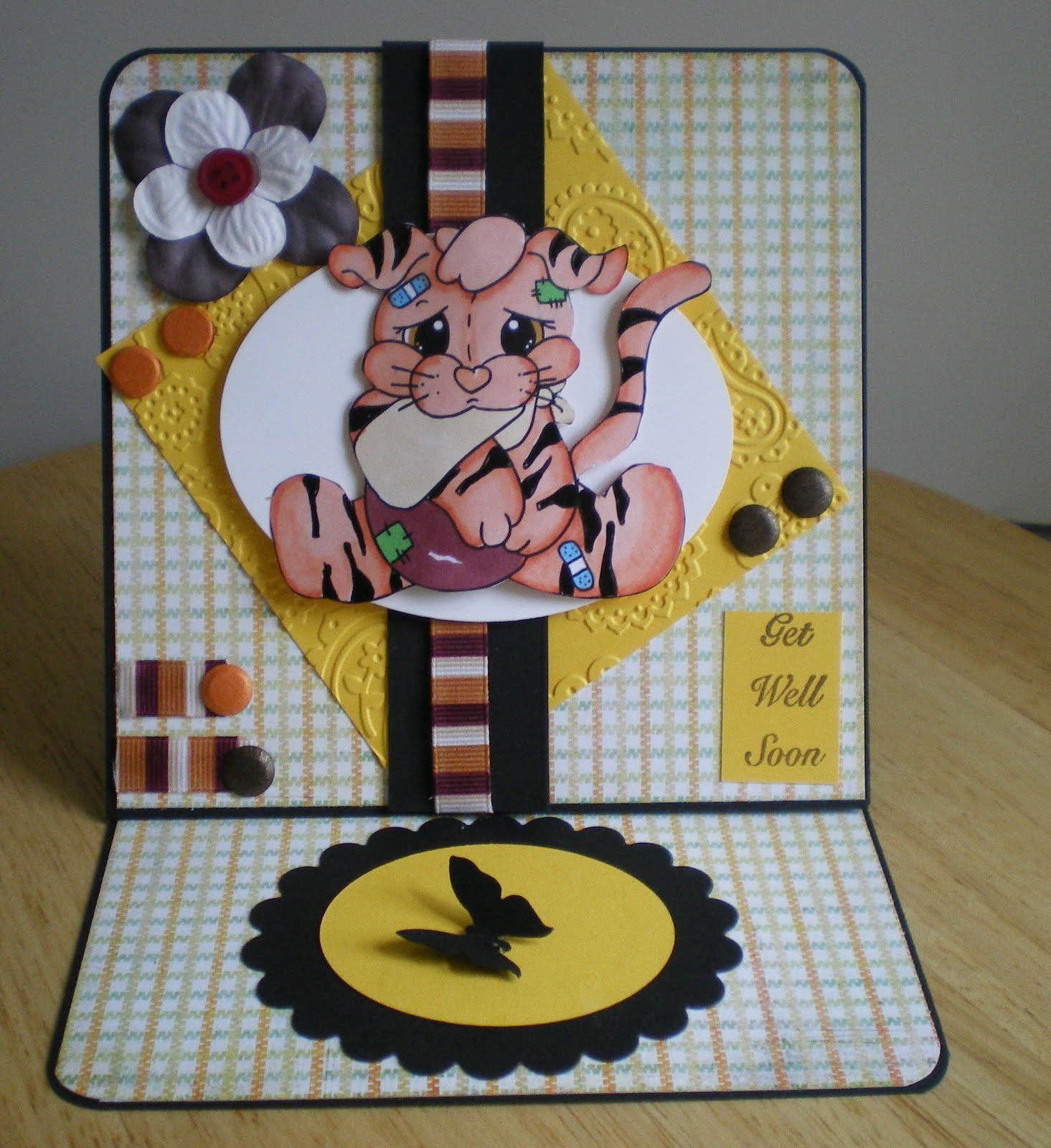 Now this is a seriously cute Tiger! I love the stripy ribbon behind him.