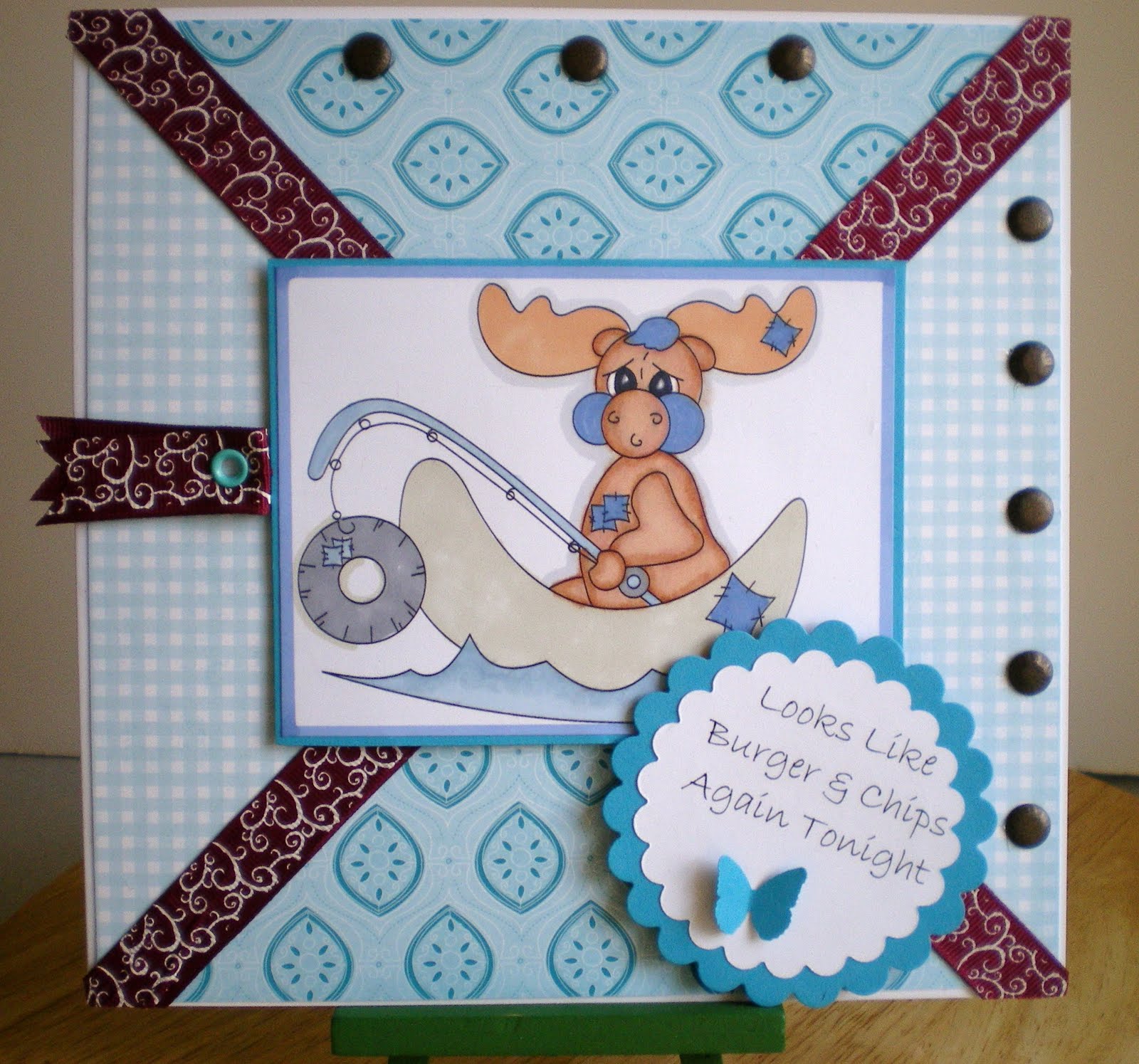 just what I had for my dinner out shopping all day so made something quick and easy, gorgeous card love the layout and the little moose is a cutie.