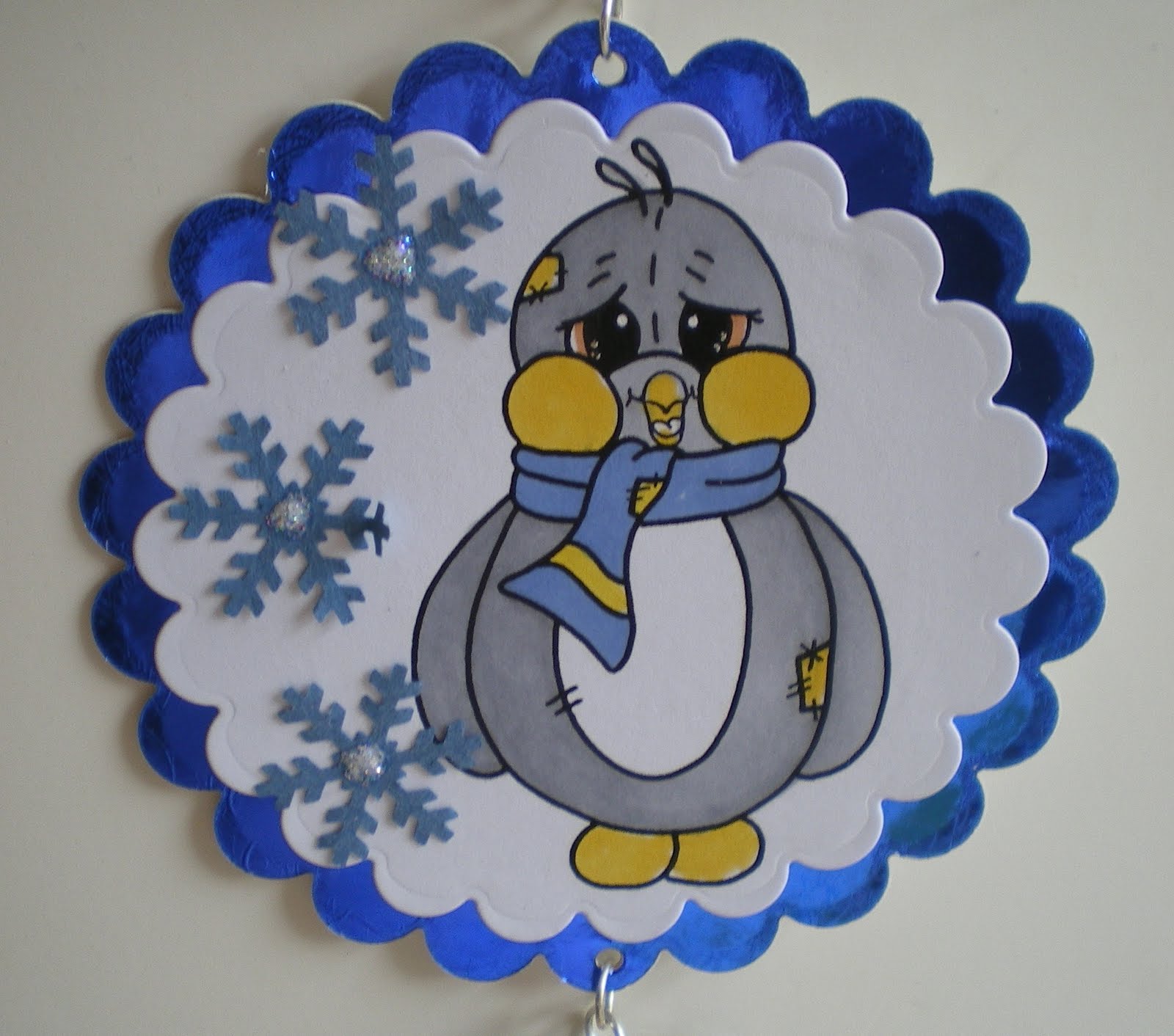 The second image is PJ the Penguin again coloured with promarkers I also punched out some snowflakes and added some stickles so they twinkle.