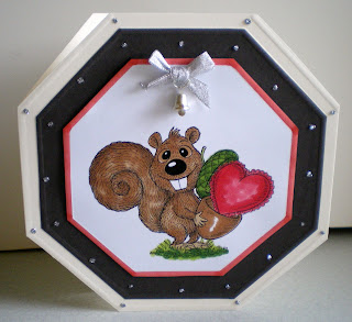 Well onto the rest of the card I used Kanban papers, added some silver corner stickers, a couple of buttons with grey ribbon and some punched daisies. Now the main image is Jovi the Jackrabbit, I adore her, also the lock and key which was a freebie I coloured them both with pro markers and cut them out I then used my Nesties and cut some circles, put them through the Cuttle Bug using the Rose embossing folder and here is the finished product I do hope you like Hugs to all and hopefully see you later.