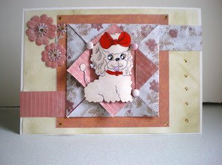 Once again I have used the easel card fold and the sketch from Paper Sundaes the sentiment is a rubber stamp from Serendipity the die cut is a new Asian die from Nellie Snellen. I have added gold pearls to the butterfly centres.