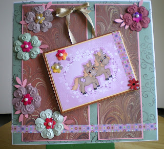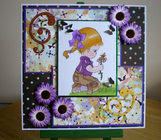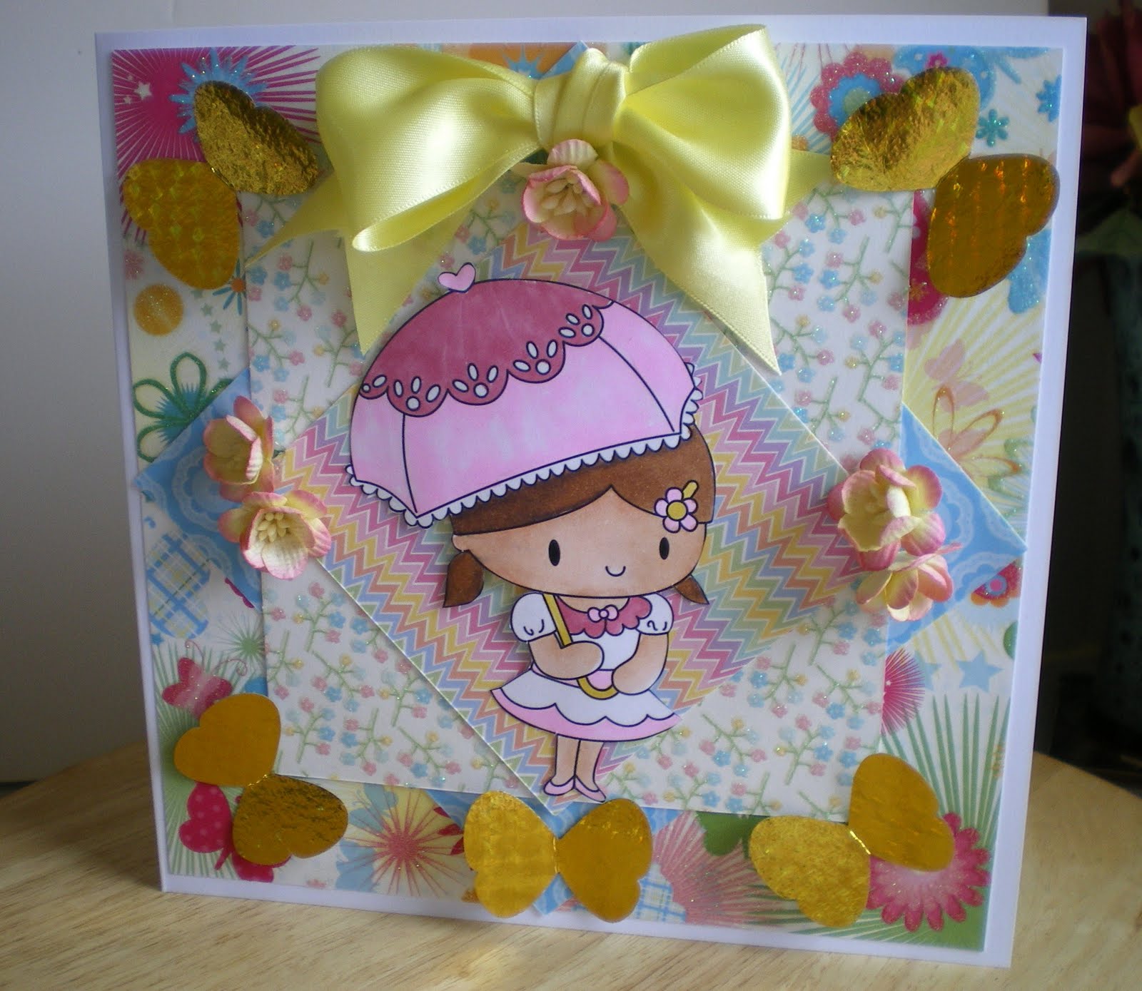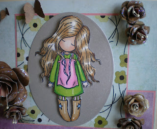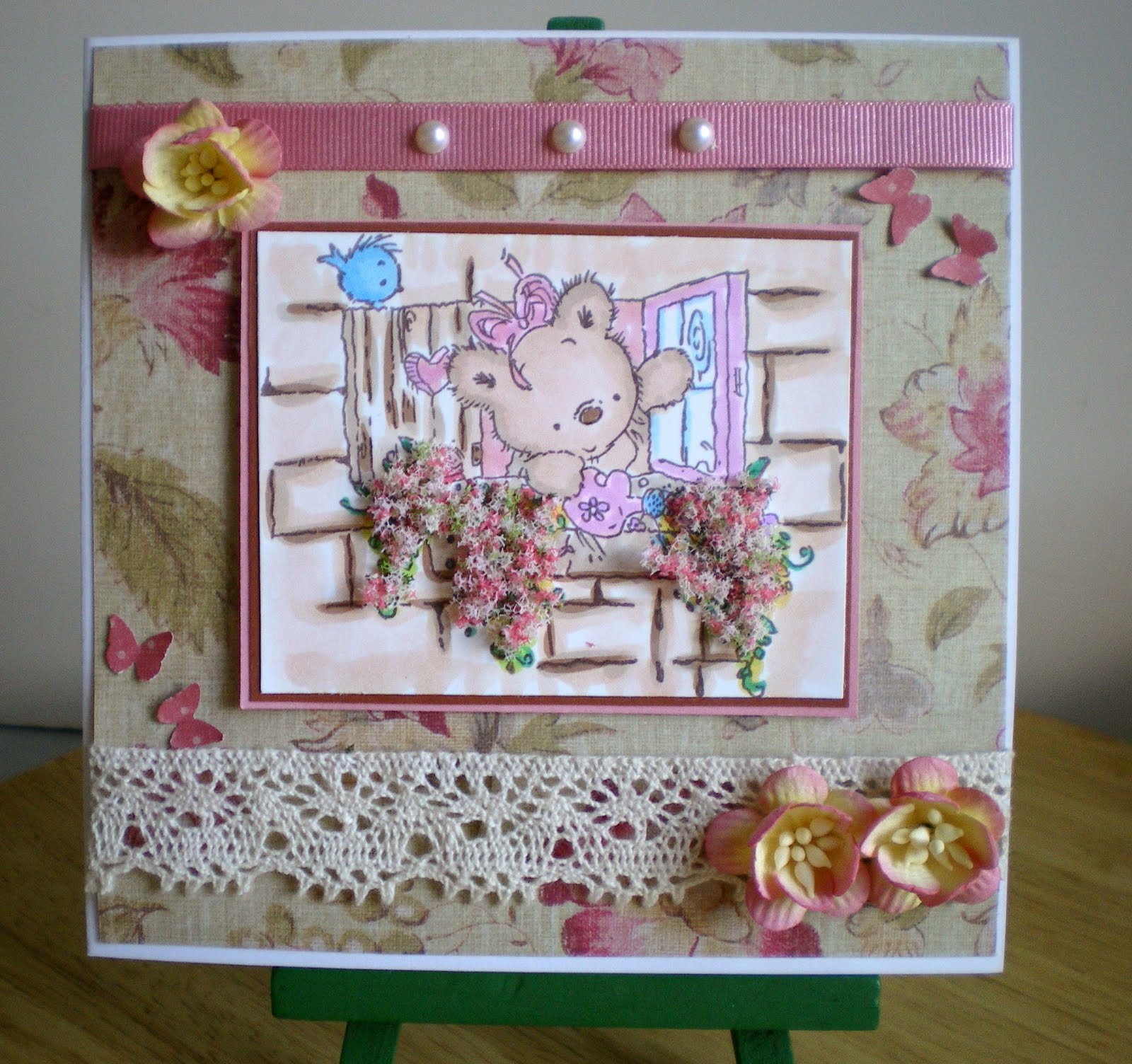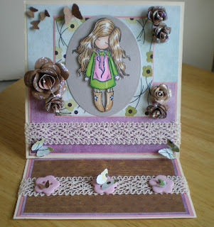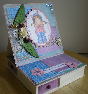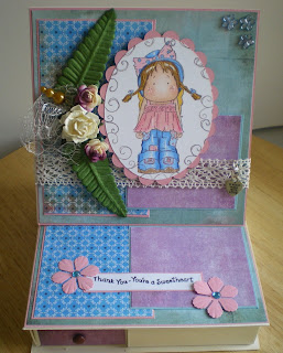Ok for my Easel 4 Drawer Box Card I used the same tutorial as I did for my Easter one but this time I created an Easel Card on the top. I have used Basic Grey Papers, scalloped oval Nestie, lace, flowers and gems Tilda has been coloured with Copics.