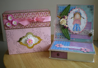 My first picture shows the two projects together the pink one is a stationery box the second is an easel card 4 drawer box.
