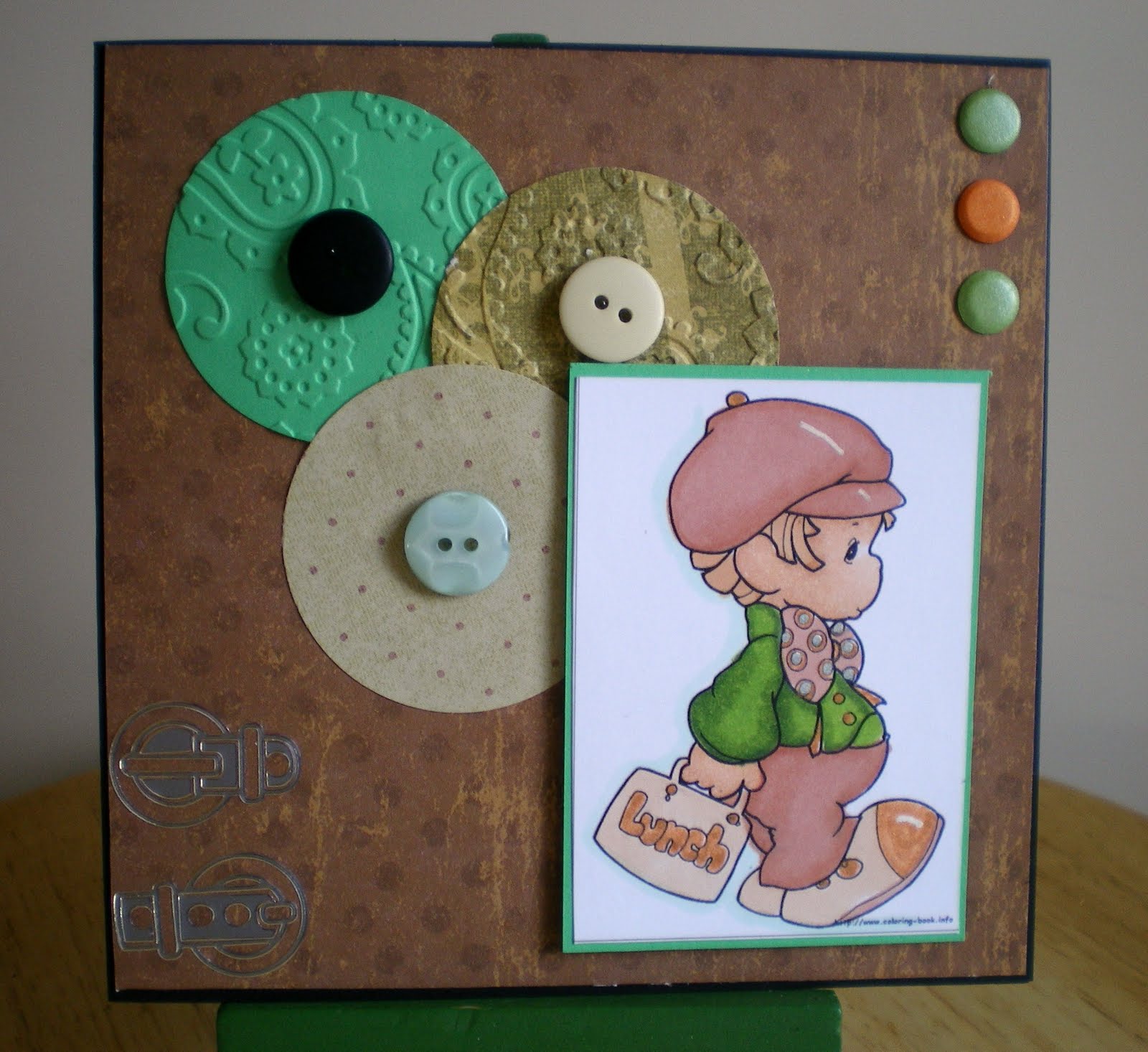I have coloured him with a mixture of promarkers and Sakura pens I flipped the sketch to accommodate the image I have added card that I embossed with the paisley Cuttlebug folder added some ribbon, card candy and flower.