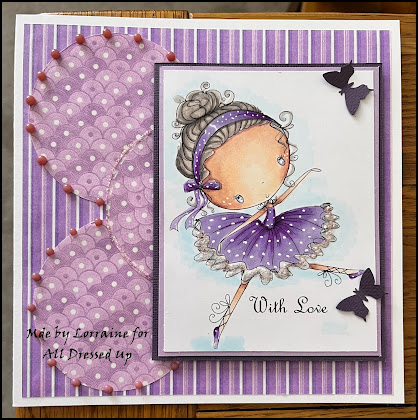 Adorable little dancer in her beautiful purple dree with spots, beautiful Lorraine,and love the girls sharing the umbrella too, lovely card design, good luck sorting all your stuff, I had to empty one shelf set for builders and so much stuff came out and too much to put anywhere, where did it all come from?