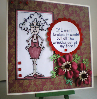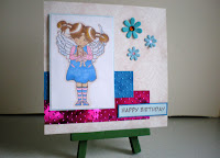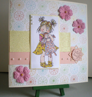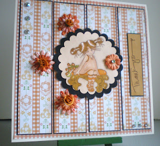 I bought a new stamp from Crafty Emma's it is from the Penny Johnson Vintage range and is a clear stamp. I inked it with Momento black ink then coloured with Copics, I think next time I use it I will try my distressing inks and go for a more sepia look.