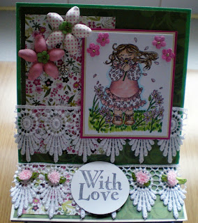 I have used a Squigglefly image called 'He Loves Me' and I have coloured her with Copics.