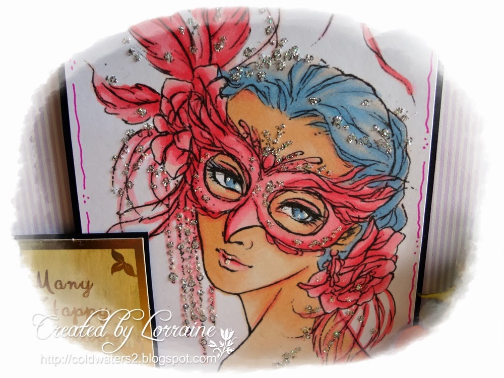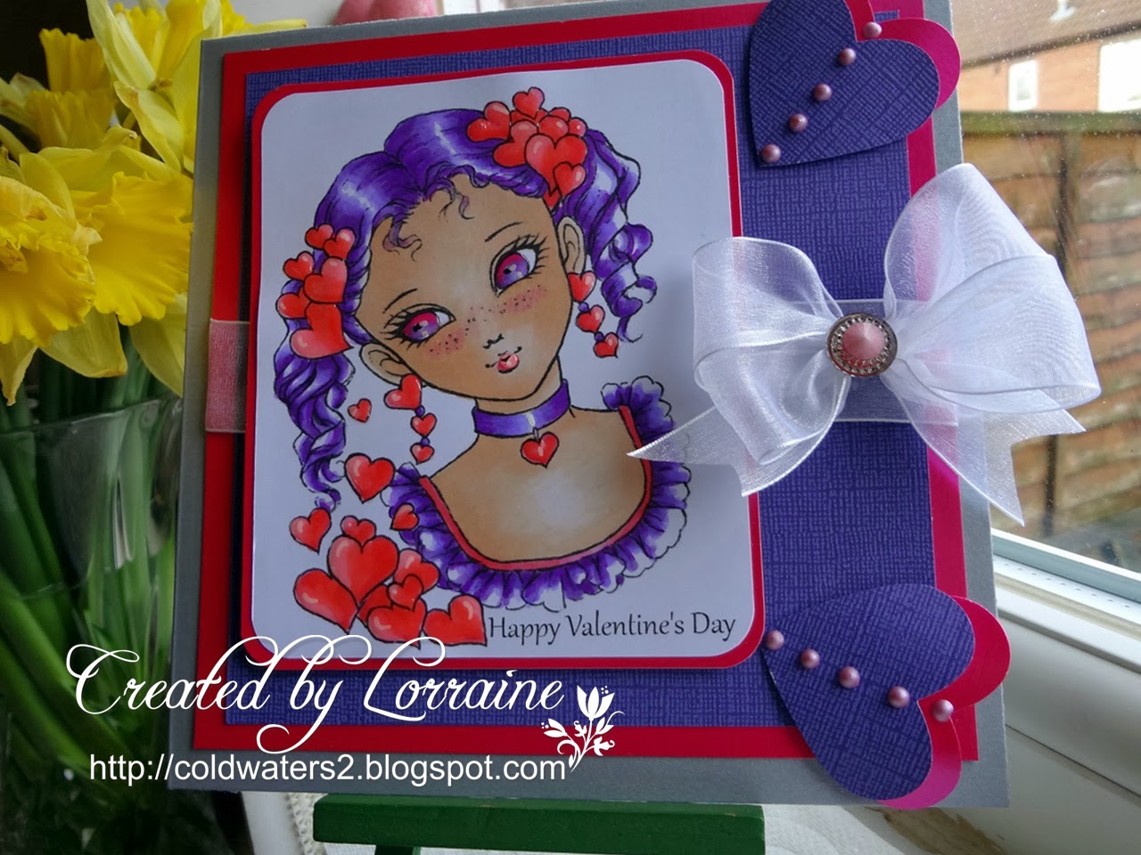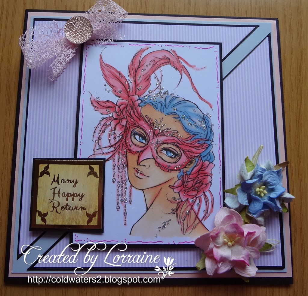 Today I have a card to share with you that I managed to finish off last night, I have been colouring images in ready to make cards up but this one is actually finished.