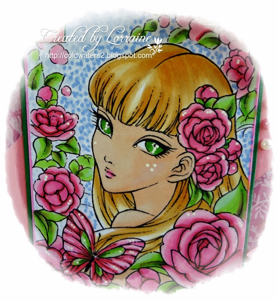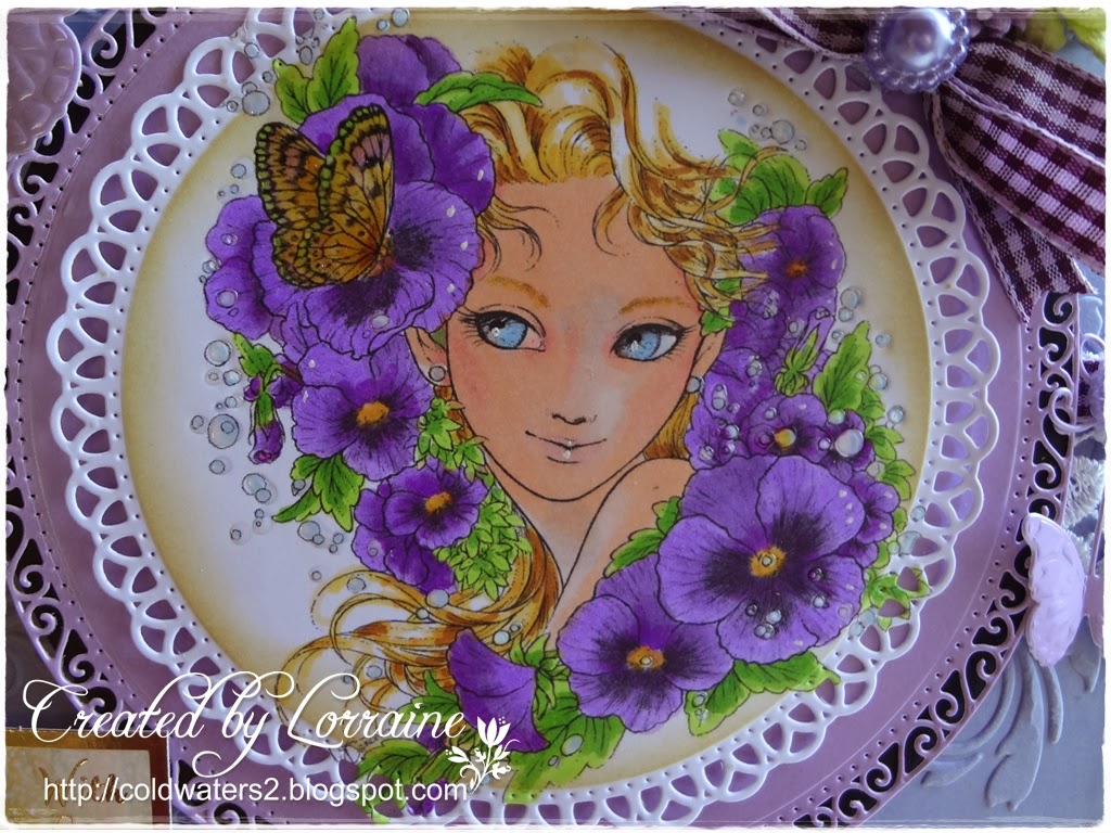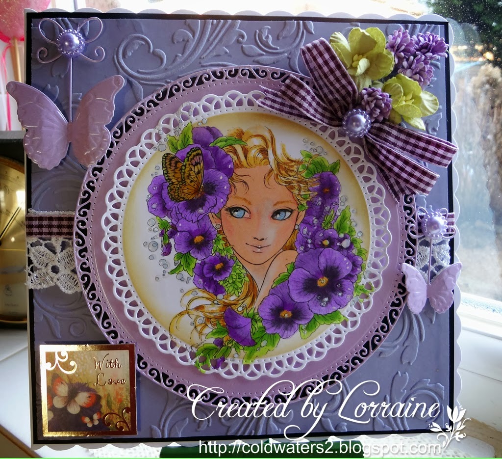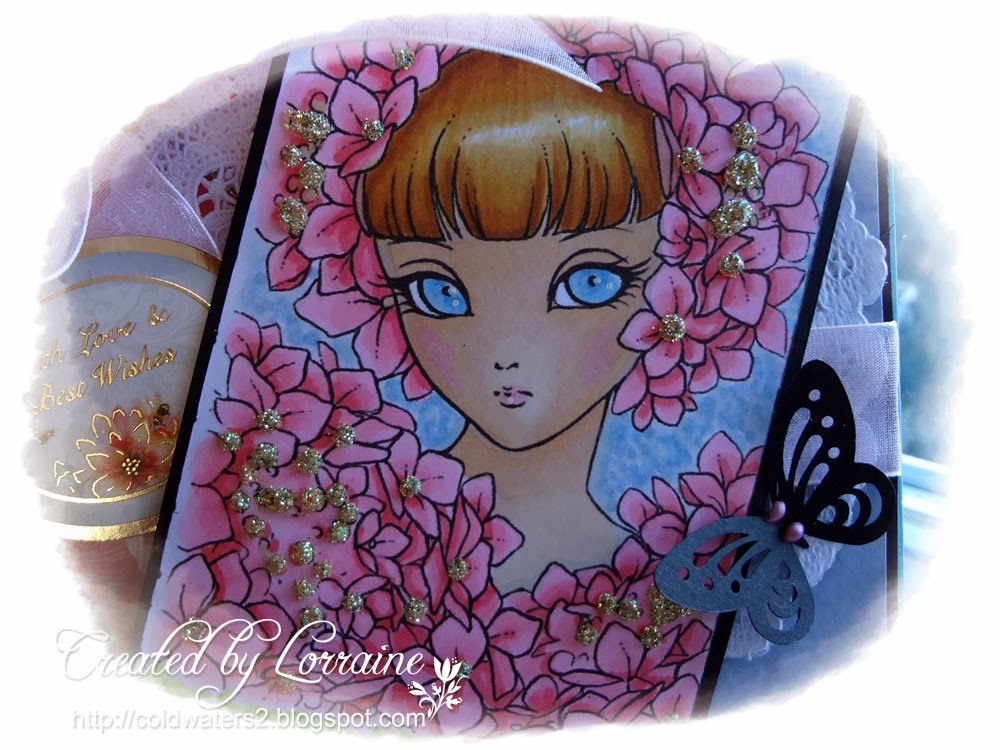 I have used an Aurora Wings image called Ribbons, I have coloured her with both Graph It Markers and Copics, I have gone for Springtime colours to brighten the day, I have also added a few new embellishments, flowers and the pearl/gold gems, a new colour of Flower Pearl and some lovely Hunkydory Lemon Sorbet Glitter, all new to me, I have taken a few pictures so, hopefully, in one of them you will see the sparkle.