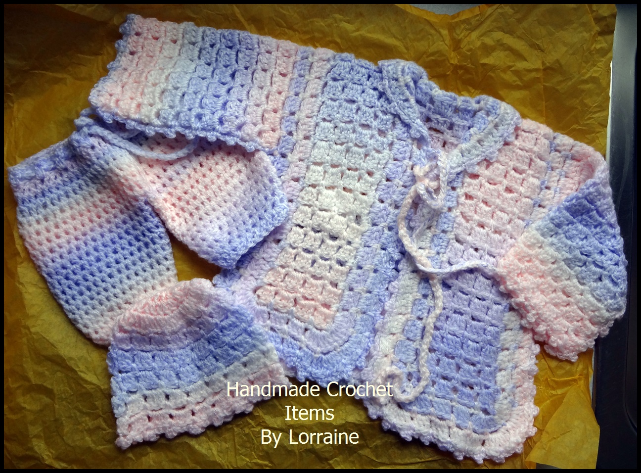 My second piece of news is that my son James and his girlfriend are having a baby, it is due in Feb 2017, I will be a Nan, how wonderful is that. Once I heard the news I felt that I needed to resurrect my crochet tools and have ago at making some baby stuff, so far I have made several hats, including one with bunny ears, baby jackets, pants and mittens, apart from the hats I have never done anything like this before but I am more than pleased with the outcome.