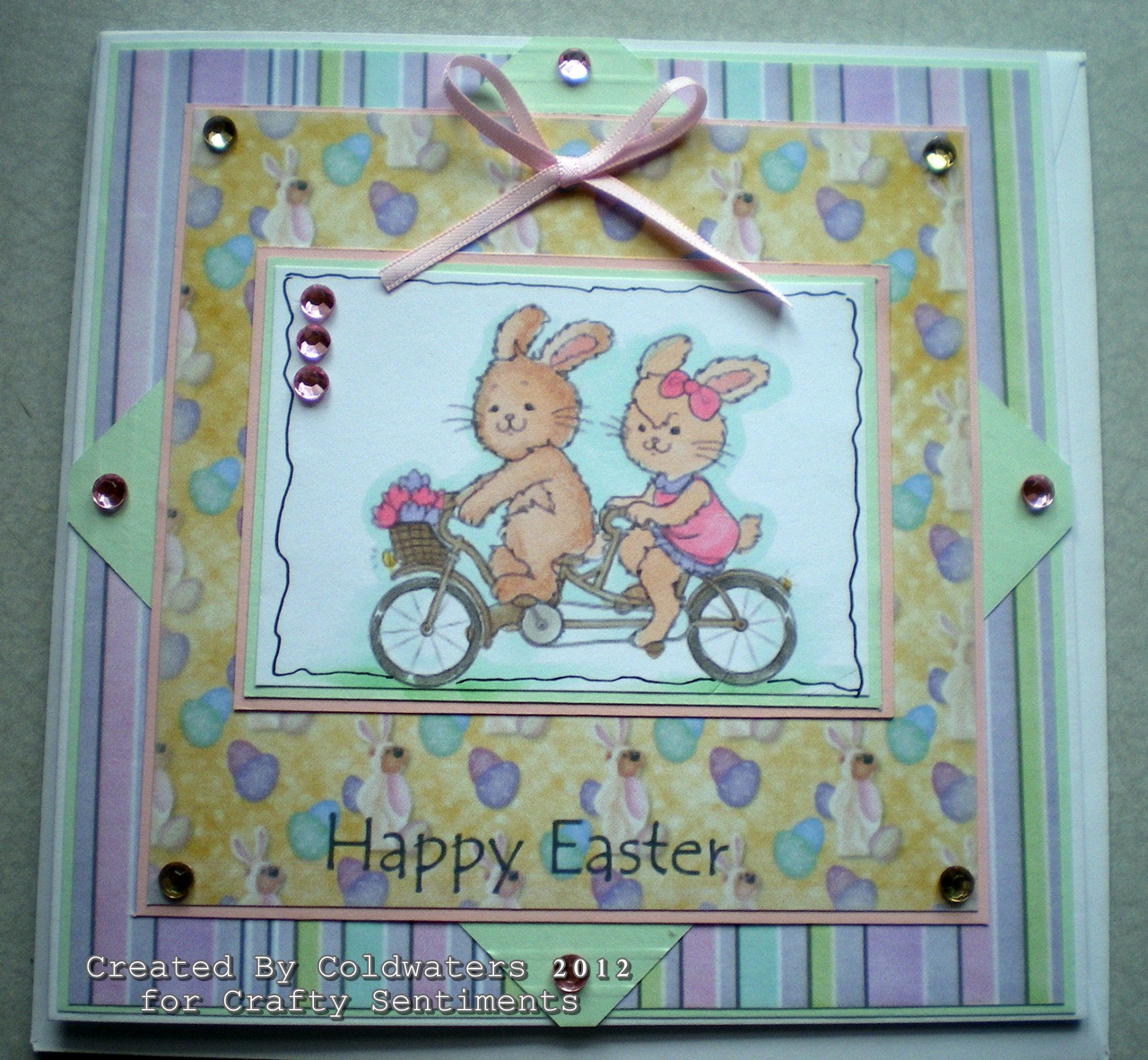 I have used one of the new Crafty Sentiments images which i have coloured with Copics. The papers are from Bearly Mine Designs, I doodled the frame around the image, added some gems, bow and a sentiment