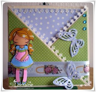 The image is a Miss Anya coloured with Copics, the butterflies I punched out using my Tonic punch I added some stickles to their wings. I hope you like and please visit the other DTM and see their beautiful cards for inspiration.