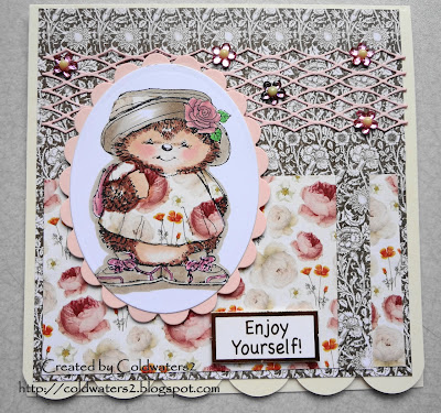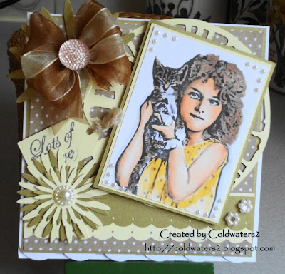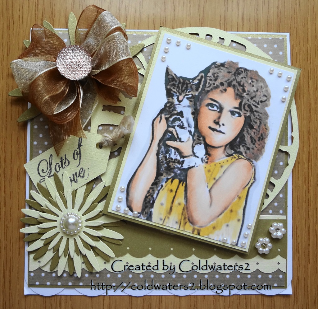 Hi all, over the last few weeks I have been very blessed and won some challenges, my gift from the 'Come and Get It Challenge' was a gift voucher from Stamp and Create I ordered a couple of Magnolia stamps and this is one of them, I received them on Friday and this one I stamped for the first time yesterday, oh I do love my Magnolia stamps, I am going to try and use them as much as possible, I have so many that have not seen the light of day, this little girl has been one of the lucky ones, lol.