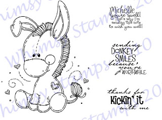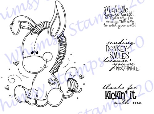 Two of Whimsy Stamps lovely Artists Melissa Jenkins and Ann Vento have teamed up together to bring us this very special donkey image and matching sentiments, these are all available to download for free from the Whimsy Stamps store page.