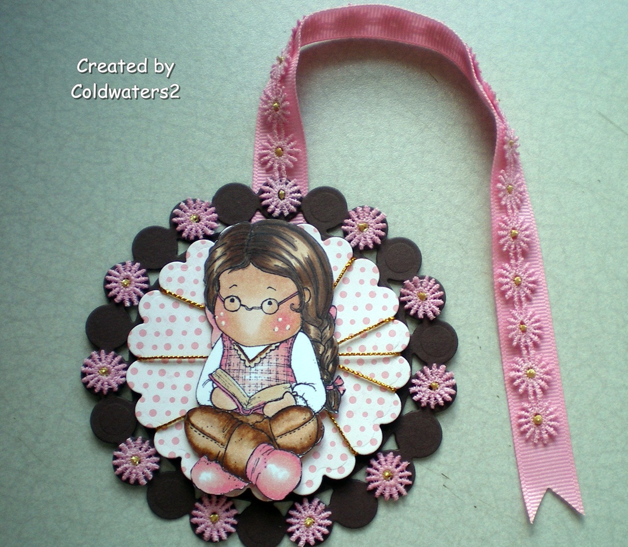 I don't have any school aged kids or know of any so I racked my brain on what I could create and what stamp to use, finally I turned to my lovely bookworm Tilda, I thought she would be perfect, and I can use her myself, lol.
